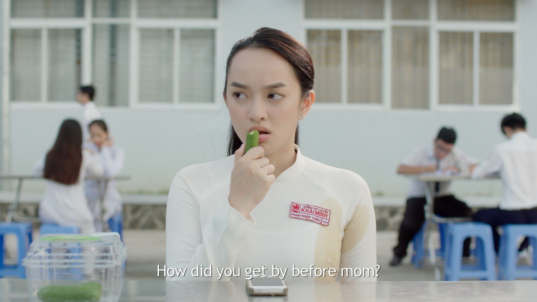 Cảnh nhân vật của Kaity Nguyễn hút vape.
