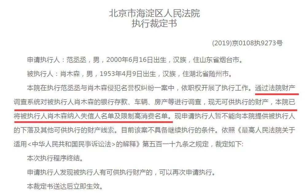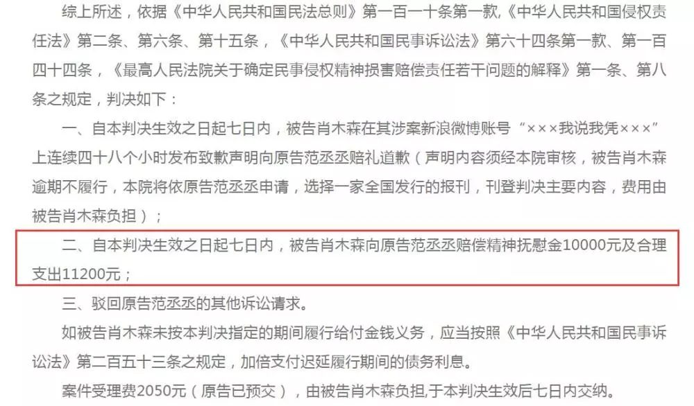 Tiêu Mộc Sâm bồi thường cho Phạm Thừa Thừa với số tiền 22000 NDT (75 triệu đồng). Xét thấy Tiêu Mộc Sâm không có khả năng về mặt tài chính cũng như không có tài sản giá trị để thế chấp, pháp luật đã liệt kê người này vào danh sách đen thất tín cũng như bị hạn chế thanh toán, chi tiêu cao.