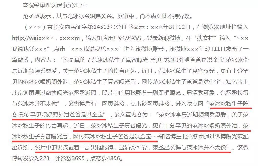 Năm ngoái, hai chị em minh tinh nổi tiếng đã cùng khởi kiện một chủ blog Tiêu Mộc Sâm lên tòa án, với nguyên nhân người này từng đăng bài viết lên mạng với nội dung cho rằng Phạm Thừa Thừa là con của Phạm Băng Băng và Hồng Kim Bảo. Cùng với đó là hình ảnh nữ diễn viên đang cho con bú (thực ra là hình được lấy từ một bộ phim của Phạm Băng Băng). Điều này đã gây ra ảnh hưởng nghiêm trọng, xúc phạm đến hình ảnh của Phạm Băng Băng lẫn Phạm Thừa Thừa.