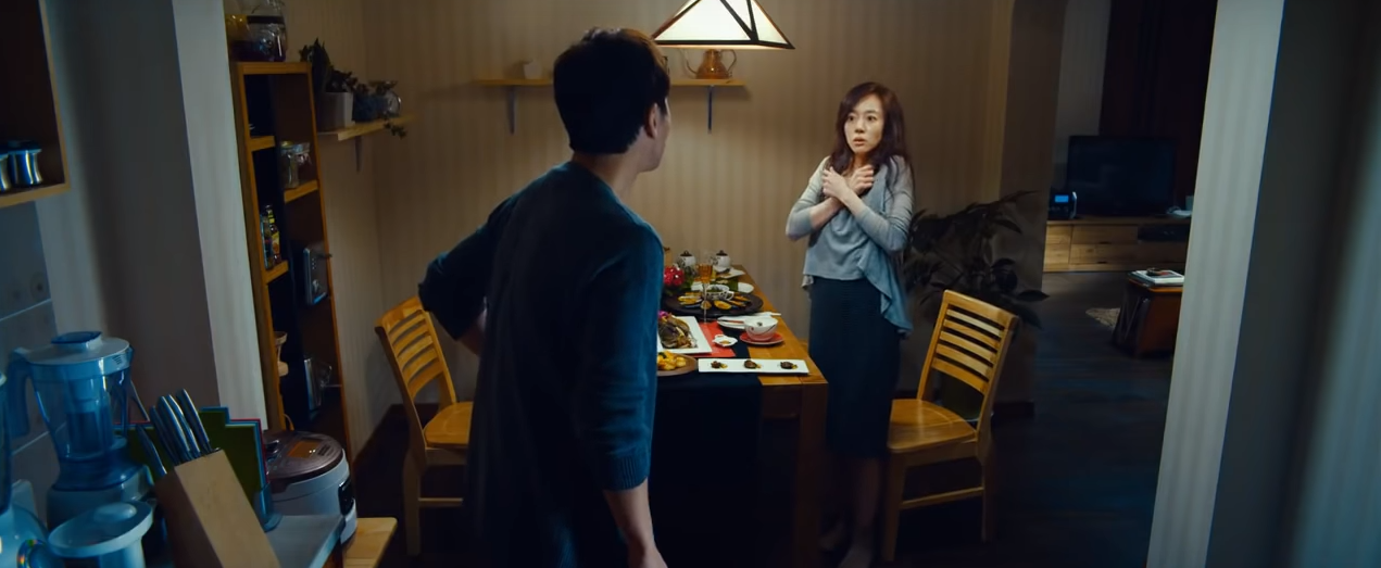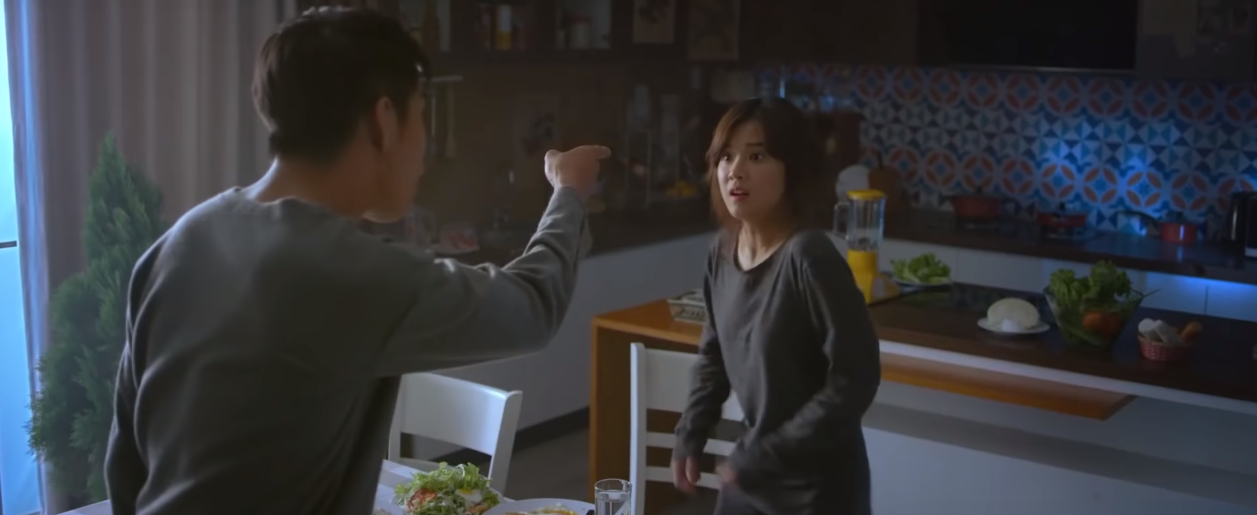Mặt khác, dù là tưởng tượng nhưng lúc bực mình với hành động của vợ, Quân đã chỉ tay vào cô ấy. Cử chỉ nhỏ nhưng cũng đủ xét về tính cách của nhân vật, anh ta không tôn trọng vợ mình. Doo Hyun thì ngược lại với điều đó.