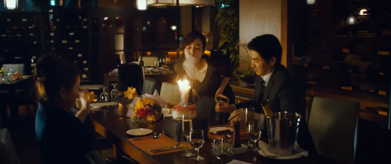 Đã thuyết phục được giám đốc, Quân nhận vị trí làm việc ở Bảo Lộc. Chiều tối hôm đó anh dẫn vợ đi ăn và nói rằng vì vấn đề công việc nên đành phải rời đi. Đang uống nhâm nhi ly rượu thì bàn bên cạnh tổ chức sinh nhật và những cây đèn cầy trên bánh kem cháy lớn. Dung không nói một lời và đến dập tắt đi bằng rượu trong miệng mình.Trước ngày đi xa, anh chồng đã dành buổi tối để “trả nợ” cho vợ.