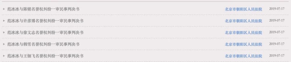 Trong đó có đơn kiện tranh chấp giữa Phạm Băng Băng và Vương Điền Phi, nữ diễn viên yêu cầu bị cáo phải bồi thường tổn thất kinh tế cùng tinh thần lên đến 500 ngàn NDT. Cuối cùng tòa án ra phán quyết buộc bị cáo phải bồi thường hai khoản thiệt hại là 80 ngàn NDT. Trước đó, bị cáo Vương Điền Phi này cũng bị Phạm Thừa Thừa khởi tố qua vào tháng 8 năm ngoái. Tại thời điểm xét xử, tòa án tuyên bố bị cáo họ Vương phải bồi thường cho Phạm Thừa Thừa về thiệt hại kinh tế và thiệt hại tinh thần 60 ngàn NDT.