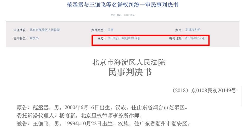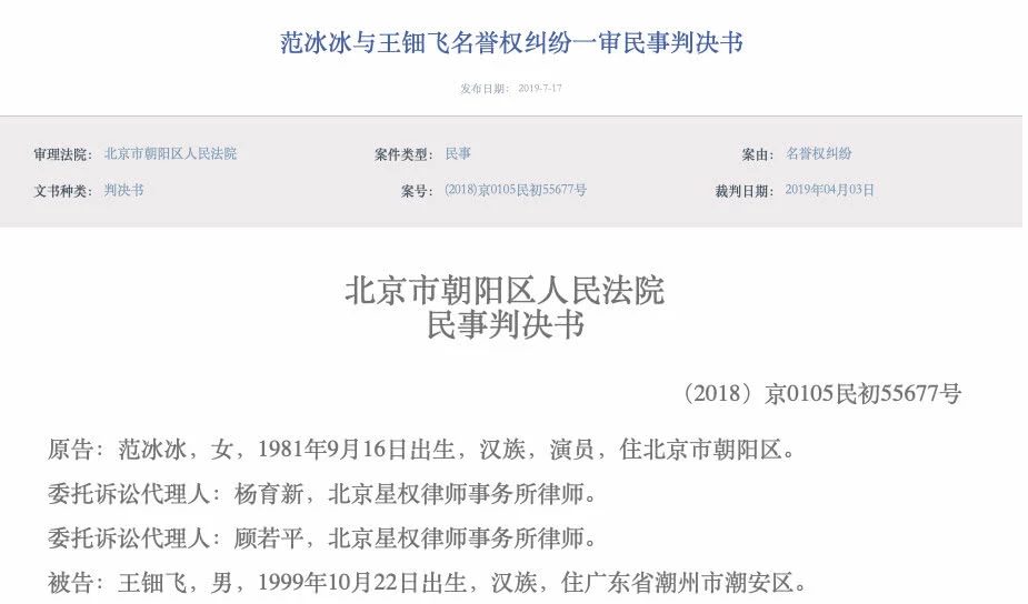 Chưa hết, phía bị cáo sinh năm 1999 phải tiếp tục đối mặt với lá đơn khởi kiện tiếp theo đến từ Phạm Băng Băng. Tung một tin đồn nhưng lại chịu đến hai lá đơn từ những người bị hắn xúc phạm, số tiền mà nam thanh niên chưa đến 20 tuổi này phải trả giá lên tới 140 ngàn NDT (476 triệu đồng) và có thể chưa phải là con số cuối cùng trước những lời nói trước đó của bản thân mình.