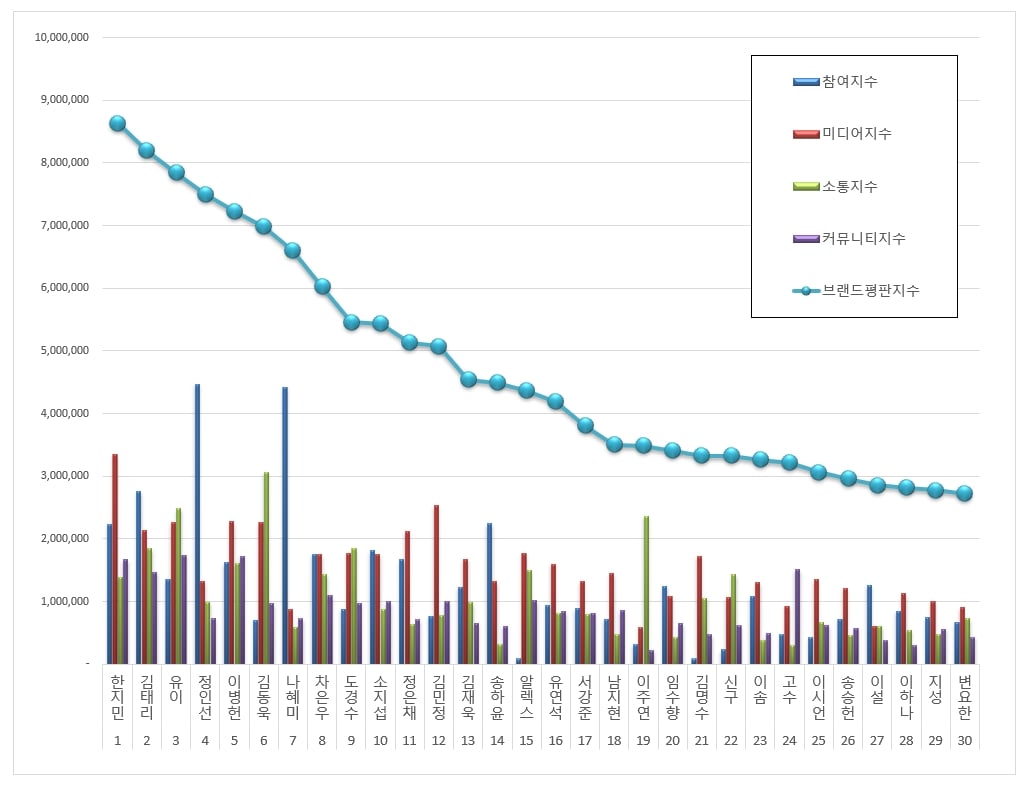 Đến hẹn lại lên, vào sáng ngày 07/10, Viện Nghiên cứu Kinh doanh Hàn Quốc chính thức công bố kết quả bảng xếp hạng sự nổi tiếng của các diễn viên truyền hình. Bảng xếp hạng này được xây dựng từ việc phân tích dữ liệu về mức độ phủ sóng, tham gia, tương tác và chỉ số cộng đồng của 100 diễn viên xuất hiện trong các bộ phim truyền hình từ ngày 05/09 đến ngày 06/10. So với bảng xếp hạng của tháng trước, bảng xếp hạng của tháng này có sự thay đổi khá lớn. Theo đó, kết quả là: