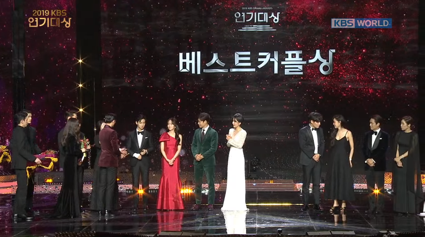 Bên cạnh đó, năm nay nhà đài cũng đã trao giải cho 6 cặp đôi được yêu thích nhất bao gồm Jang Dong-Yoon và Kim So-Hyun (The Tale of Nokdu), Jang Hyun-Sung và Kim Jung-Nan (Doctor Prisoner), Kim Myung-Soo và Shin Hye-Sun (Angel's Last Mission: Love), Kang Ha-Neul và Kong Hyo-Jin (When the Camellia Blooms), Oh Jung-Se và Yum Hye-Ran (When the Camellia Blooms), cuối cùng là Yu Jun-Sang và Shin Dong-Mi (Liver or Die).