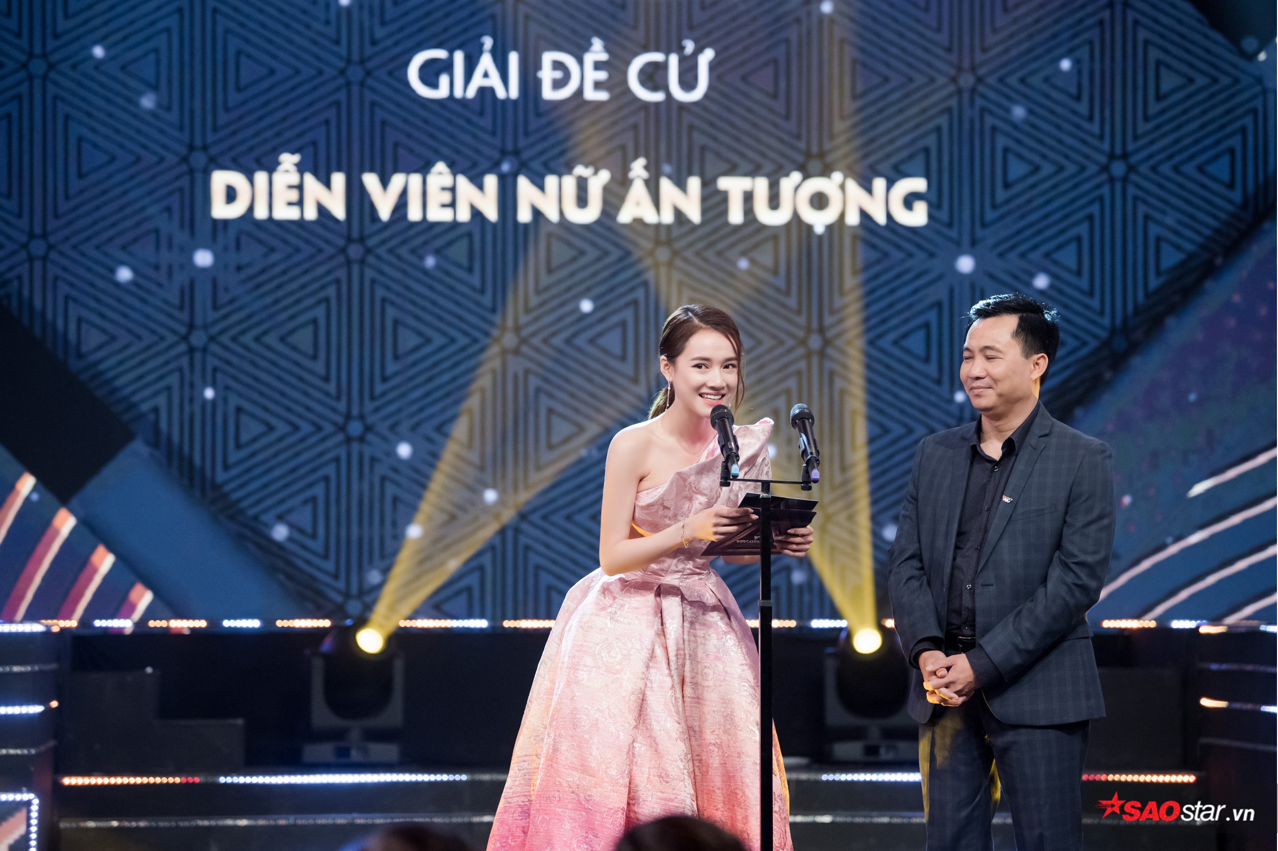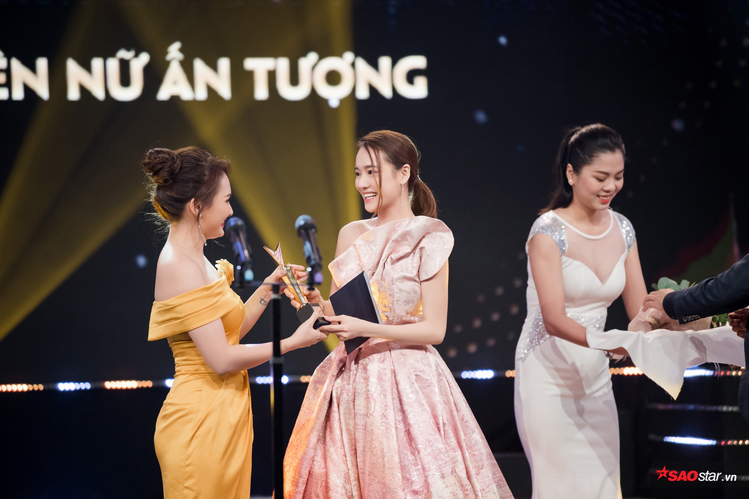 Top 5 đề cử Nữ diễn viên ấn tượng cũng vô cùng gay cấn với màn tranh tài của 5 cái tên đình đám trong năm qua gồm có Bảo Thanh, Thu Quỳnh, Bảo Hân (Về nhà đi con), Thanh Hương (Quỳnh búp bê) và Ninh Dương Lan Ngọc. Vượt qua các đối thủ cũng như chính những người “chị em” trong gia đình Về nhà đi con, Bảo Thanh là cái tên được xướng lên cho hạng mục.