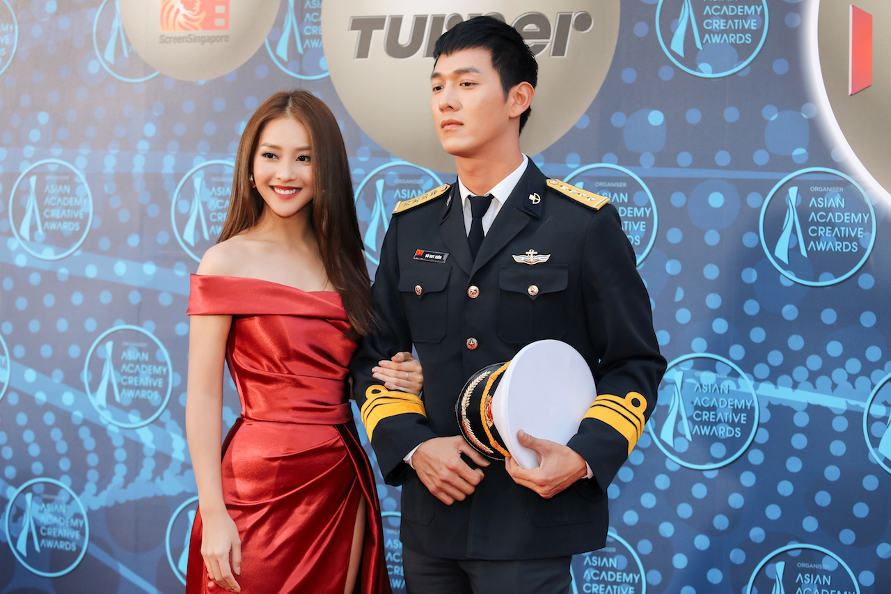 Song Luân - Khả Ngân xuất hiện trên thảm đỏ trao giải Giải thưởng Hàn Lâm Sáng tạo Châu Á.