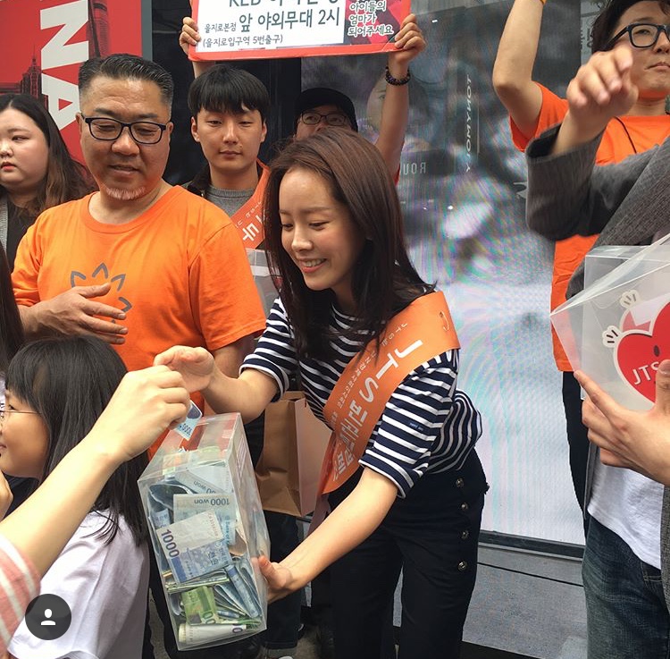 Han Ji Min được xem là nữ diễn viên có “lịch trình” đi từ thiện nhiều nhất Hàn Quốc cho đến thời điểm bây giờ. Đây không phải là lần đầu tiên cô bước chân xuống phố để đi khuyên góp.