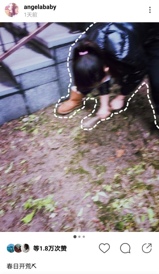 Và mới đây, Angelababy tiếp tục có một kỹ năng mới và đã cho cho mọi người thấy được hình ảnh đó. Tối ngày 16/03, Angelababy đăng tải hình ảnh trong cuộc sống đính kèm với nội dung: ”Khai hoang ngày xuân!“ Nhiều người nói rằng Angelababy rất nghiêm túc vì cô cột tóc cao lên, tạo hình không quá cầu kỳ và làm việc rất năng nổ.