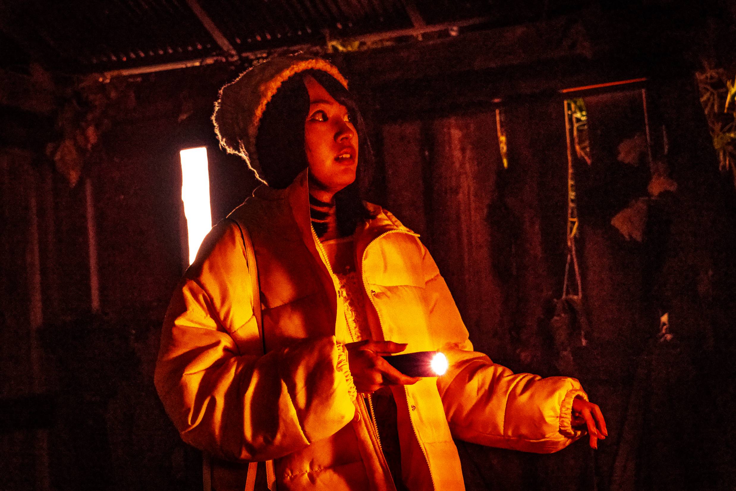 Ở con đường phía trước, từ trên trời lại rơi xuống những vật thể lạ lùng, không rõ hình dạng. Xe càng chạy, bóng dáng vật thể càng trở nên to hơn cho tới khi một vật trông như búp bê rơi xuống kính chắn ô tô của Kanae. Bóng đen bao trùm kèm tiếng kêu thất thanh của cô gái. Cảnh một phụ nữ phun trào máu, một thân thể nằm co quắp đầy đau đớn, một vụ ẩu đả… lướt qua cho thấy nhiều chuyện không lành đang diễn ra tại ngôi làng.