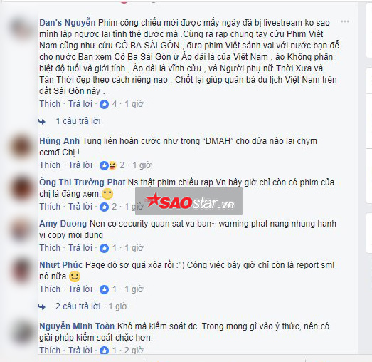 Chiều 13/11, bộ phim Cô Ba Sài Gòn bất ngờ bị quay livestream lén. Chỉ trong vòng chưa đầy 30 phút, số lượng người tham gia vào livestream lên đến hơn 5.700.