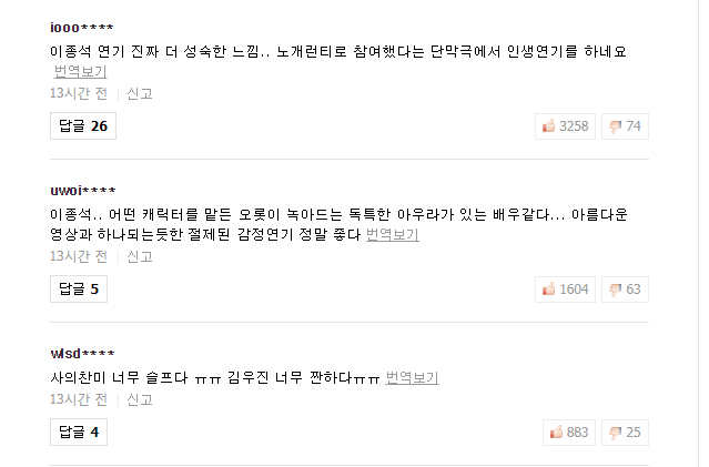 1. [+3258, -74]Cảm giác diễn xuất của Lee Jong Suk càng trưởng thành hơn….Có diễn xuất trong bộ phim mà anh ấy tham gia như một lời đảm bảo rồi