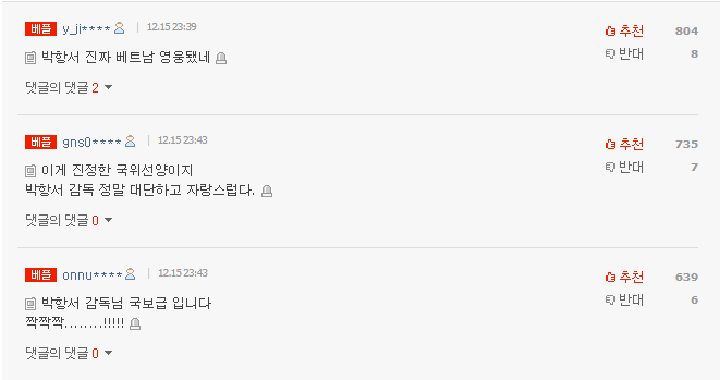 2. [+735, -7] Đây thực sự là một thiện chí. Tôi thật sự rất tự hào về HLV Park Hang Seo