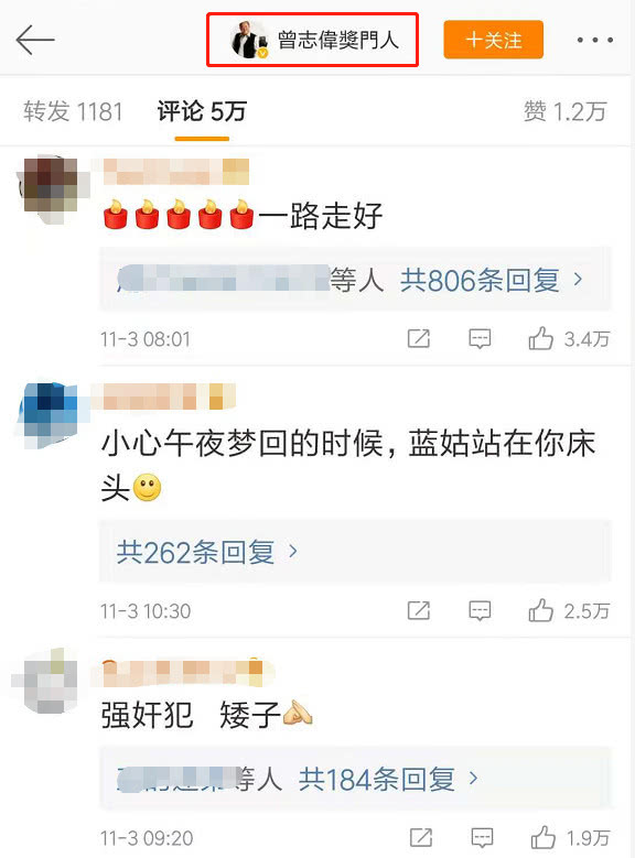 Khán giả phát hiện phần bình luận trên weibo cá nhân của Lương Chí Vỹ đã bị “nhấn chìm”, đặc biệt có một dòng trạng thái của ông sau khi cập nhật đã có hơn 50.000 lời bình luận, đa phần đều chất vấn và chỉ trích khả năng ông làm tổn hại đến Lam Khiết Anh. Tuy Tăng Chí Vỹ chưa từng lên tiếng thanh minh hay giải thích gì về tin đồn này, nhưng cư dân mạng dường như vẫn không thể xóa bỏ hoài nghi.
