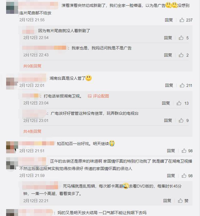 Thực ra, khi một phim cũ nổi tiếng nhưng chưa công chiếu tập cuối và chiếu phim mới vẫn thường xảy ra và có thể lý giải được, nhưng tình huống cắt đi phân đoạn cuối của tập cuối và cắt đi phần đầu của phim mới như đài Hồ Nam này có thể nói là lần đầu “sáng tạo” ra.