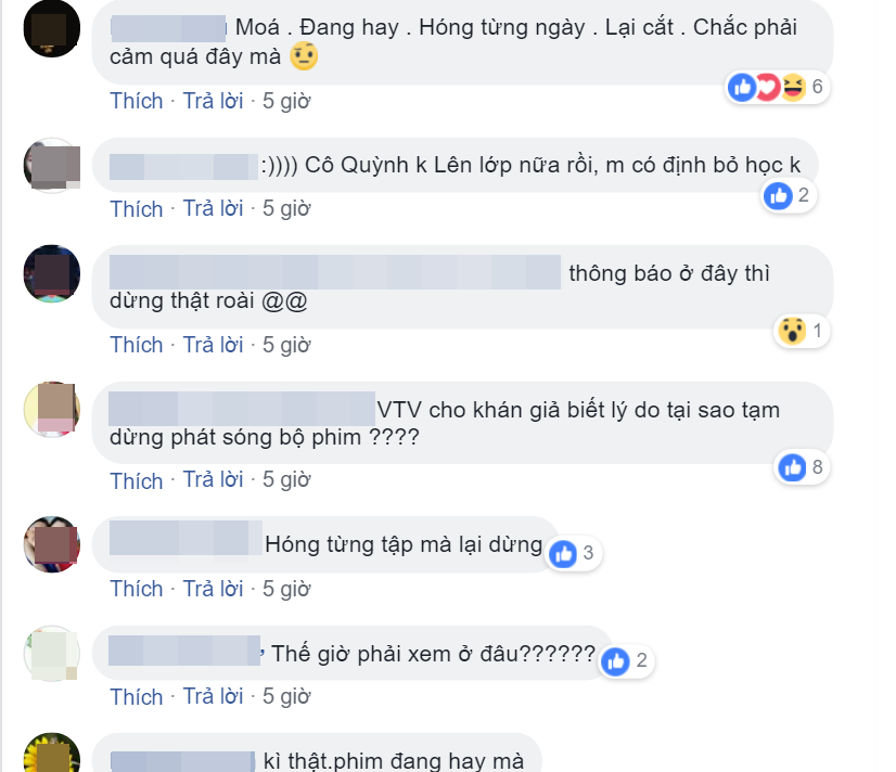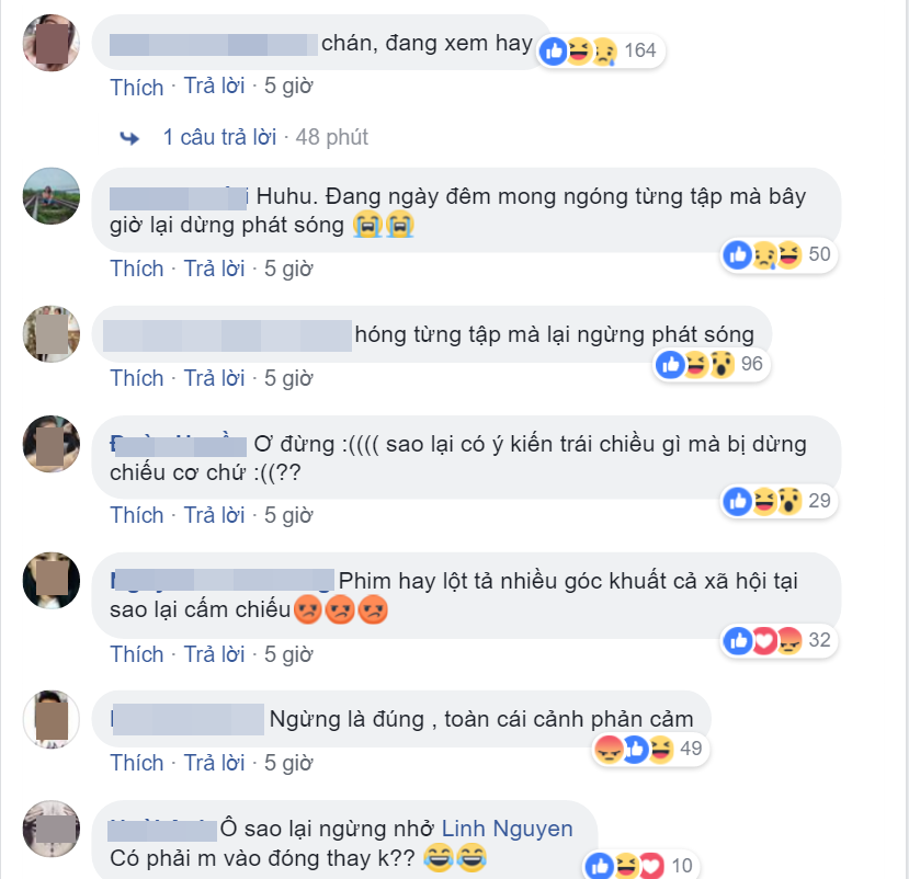 Nhận được tin tức, dàn diễn viên chính tham gia bộ phim như Thu Quỳnh, Thu Hương,… đều ngơ ngác vì không biết chuyện gì đang xảy ra. Bởi lẽ, ekip sản xuất bộ phim cũng không hề lên tiếng xác nhận hay đưa ra phản hồi về sự việc. Trong khi đó, khán giả theo dõi bộ phim càng tiếp tục bàn tán sôi nổi, hầu hết người tỏ ra phẫn nộ, tiếc nuối do mãi mới có một tác phẩm hay nhưng lại bị cắt sóng giữa chừng.