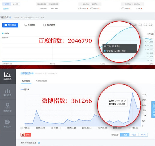 Chỉ số tìm kiếm trên các trang tăng chóng mắt: baidu là hơn 2 triệu lượt . Và trên weibo là hơn 3,6 triệu lượt.