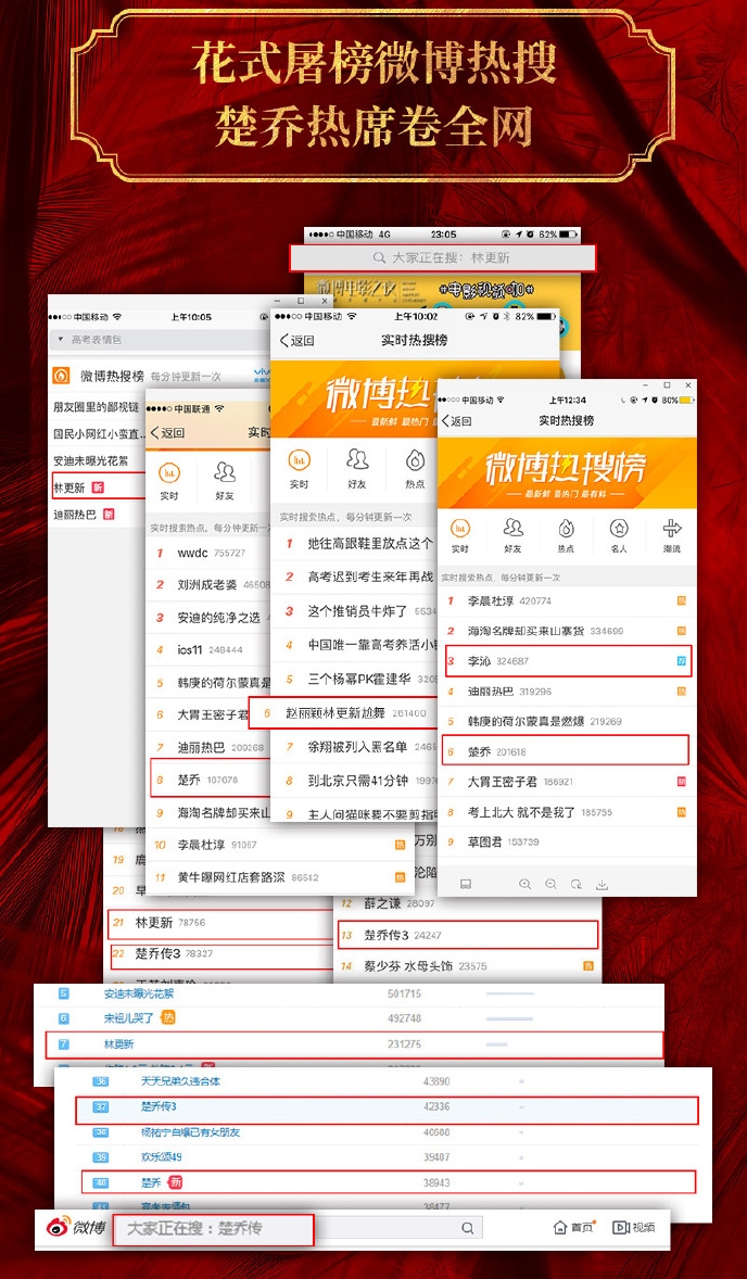 Các từ khóa Triệu Lệ Dĩnh, Lâm Canh Tân, “Sở Kiều truyện” đạt top search trên weibo.