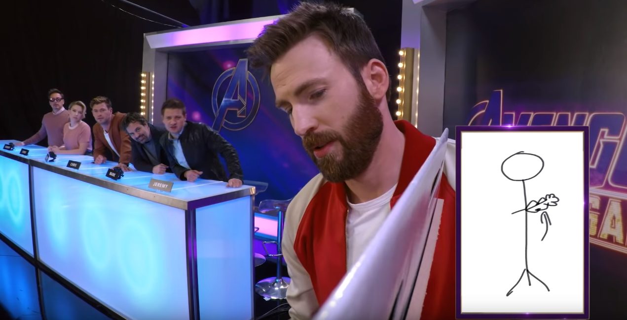 Mới đây, Marvel Entertainment vừa chia sẻ một video về trò chơi “đuổi hình bắt chữ” với chủ đề ngẫu nhiên liên quan đến Avengers: Endgame. Hai anh em đạo diễn Anthony và Joe Russo làm người hướng dẫn quản trò, trong khi các diễn viên của Avengers gốc Robert Downey Jr., Chris Evans, Scarlett Johansson, Chris Hemsworth, Mark Ruffalo và Jeremy Renner lần lượt lên bảng vẽ hình làm gợi ý để những người còn lại đoán ra tên từ khóa cho câu trả lời.