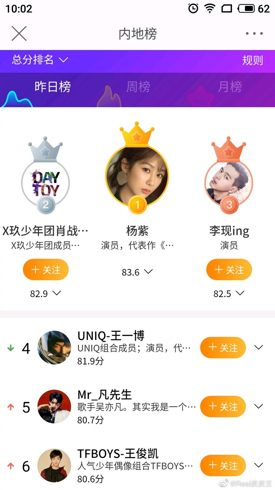 Thế nhưng sau hôm sinh nhật của cả hai, rất nhiều cư dân mạng thắc mắc lẽ nào lưu lượng của Ngô Diệc Phàm không bằng Dương Tử. Khi tổng hợp chỉ số nhiệt độ khác nhau, bất luận là bảng xếp hạng nhóm siêu chủ đề hay danh sách độ chú ý, lượng thảo luận trên weibo… thì sức nóng của Dương Tử đều thắng Ngô Diệc Phàm.