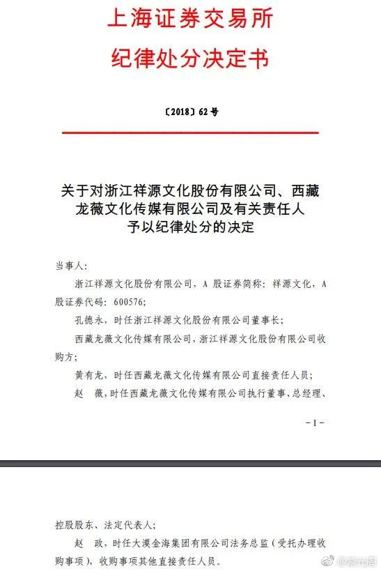 Tháng 11 năm ngoái, Sở giao dịch chứng khoán Thượng Hải đã đưa ra biện pháp xử lý kỷ luật đối với Công ty văn hoá Tường Nguyên và Công ty văn hoá Long Vy, đồng thời công khai xác định Triệu Vy và chồng Huỳnh Hữu Long không có quyền và không được phép đảm nhận các chức vụ Tổng, Giám, Cao (Tổng giám đốc, giám sát, quản lý cao cấp như giám đốc, phó giám đốc, phụ trách tài vụ…) trong vòng 5 năm.