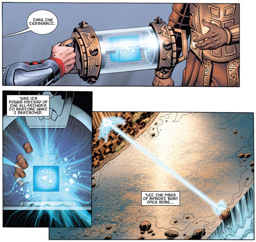 Phân đoạn Odin sử dụng quyền năng của khối Tesseract để sửa chữa cổng cầu vồng Bifrost đến Asgard.