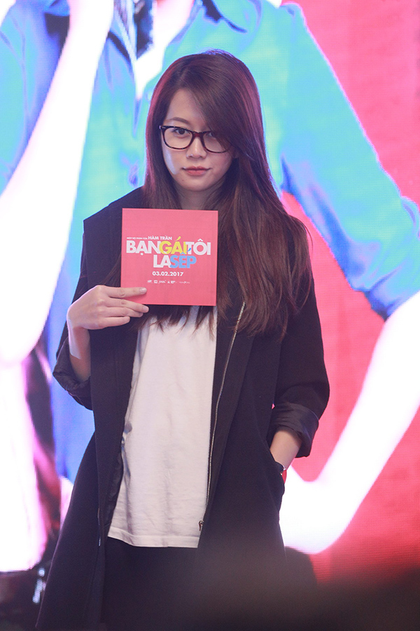 Bên cạnh đó, đến chúc mừng phim Bạn gái tôi là sếp còn có nhiều gương mặt được yêu thích tại Hà Nội như An Nguy, Sun HT, B Trần, Emily, Big Daddy, Justa Tee, Trâm Anh, MC Đức Bảo… Nếu hầu như khách mời nào cũng đều xuất hiện với ngoại hình sang trọng, lộng lẫy thì cô nàng An Nguy lại trở nên “lệch tông” hoàn toàn. Chẳng cần diện váy vóc “lồng lộn”, An Nguy chọn cho mình bộ trang phục đời thường giản dị, năng động và rất phù hợp với thời tiết se lạnh của Hà Nội.