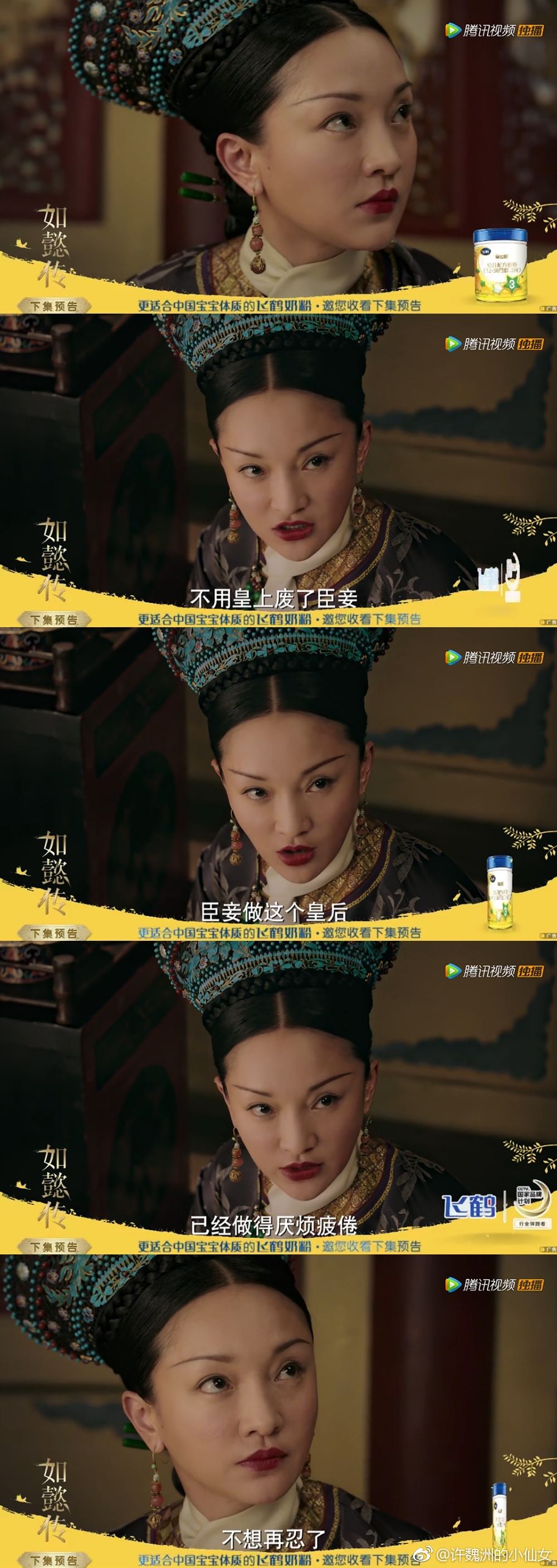 Hay mới đây nhất là đoạn preview cho các tập phim từ 83-86, với phân đoạn Như Ý ban phát cái chết cho Lệnh quý phi hay cắt tóc đoạn tuyệt với Hoàng đế Càn Long, giọng nói ánh mắt đều kiên định. Ngay khi đoạn preview này được đưa lên khán giả đã đồng loạt tán thưởng khả năng diễn xuất của Châu Tấn: “Tại sao vẫn có người nói Châu Tấn diễn không tốt nhỉ, giọng nói, ánh mắt ấy tất cả đều là cái thần của bộ phim”, “Châu Tấn thật sự là diễn viên do trời sinh”, “Châu Tấn khả năng diễn xuất quá tốt, khi bắt đầu còn ghét cô ấy, bây giờ thì biết rồi”…