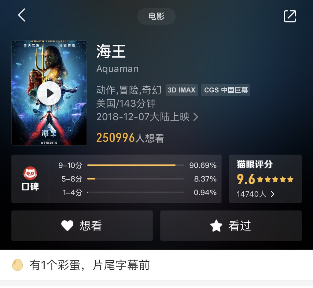 Trước đó, Aquaman cũng thu về rất nhiều những đánh giá tích cực từ khán giả khi đạt 8,4/10 từ trang tổng hợp đánh giá Douban và 9,5/10 từ ứng dụng bán vé hàng đầu Maoyan. Sự bùng nổ tại các rạp chiếu phim và doanh thu mở màn đã giúp bộ phim thúc đẩy một lượng suất chiếu khổng lồ cho bộ phim siêu anh hùng bom tấn này.