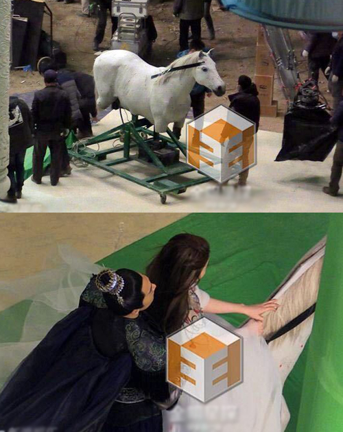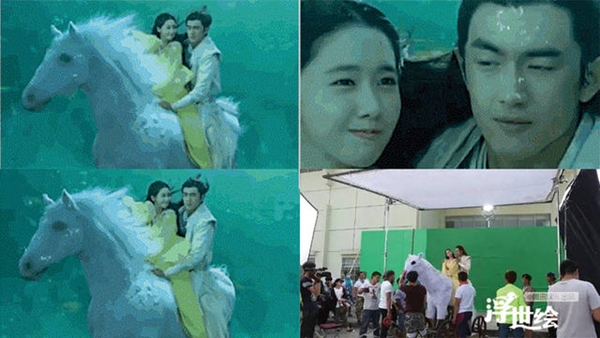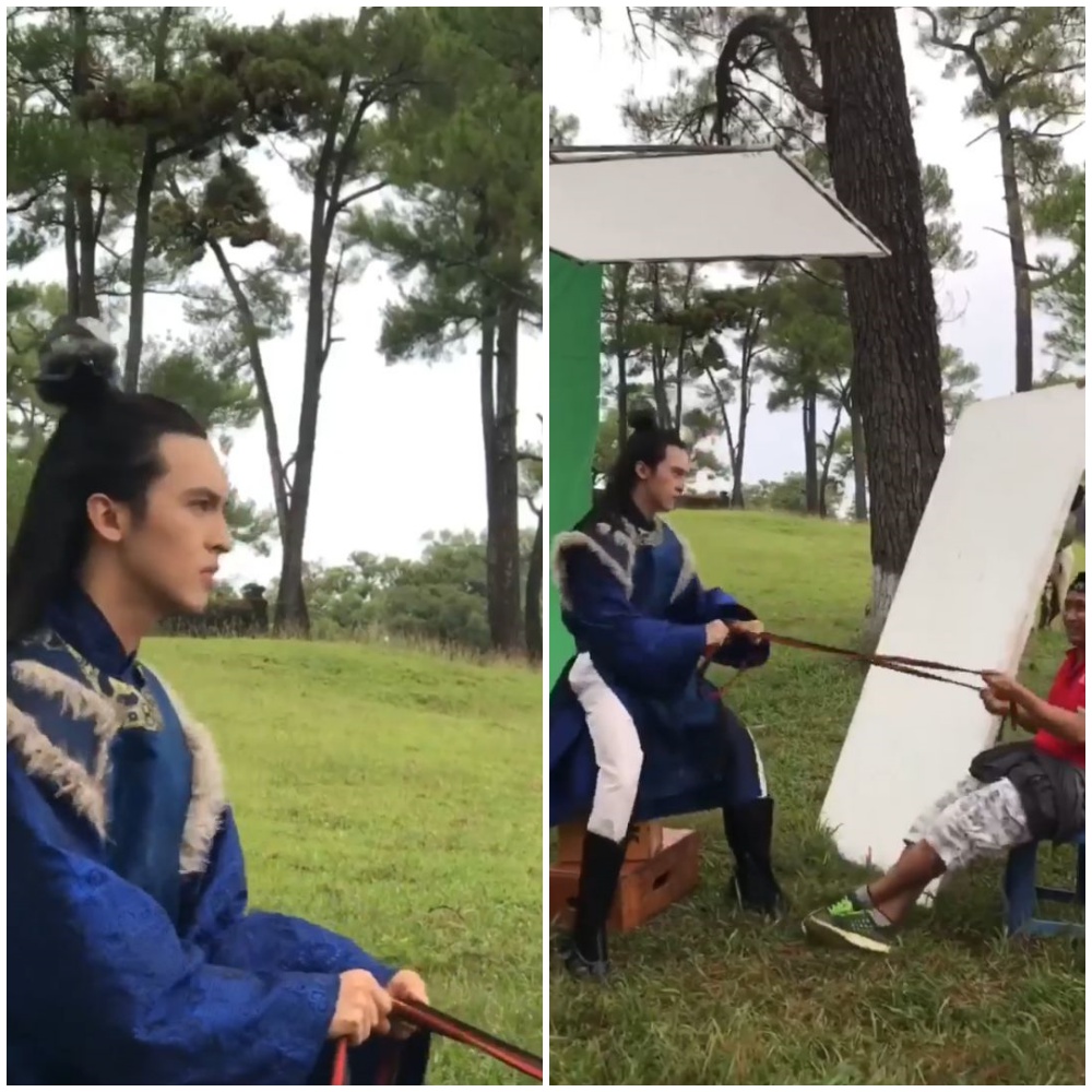 Trước đó, màn ảnh Hoa ngữ cũng nhiều phen gây cười khi hé lộ hậu trường của những cảnh quay phi chiến mã hoành tráng, nhưng thực ra là ngồi tại chỗ cưỡi ghế gỗ hoặc ngựa mô hình cạnh phông xanh.