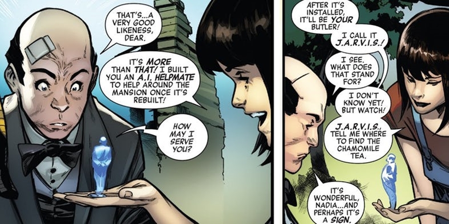 Nadia chế tạo ra Trí tuệ Nhân tạo Jarvis nhằm hỗ trợ quản gia trong việc trông nom biệt thự.