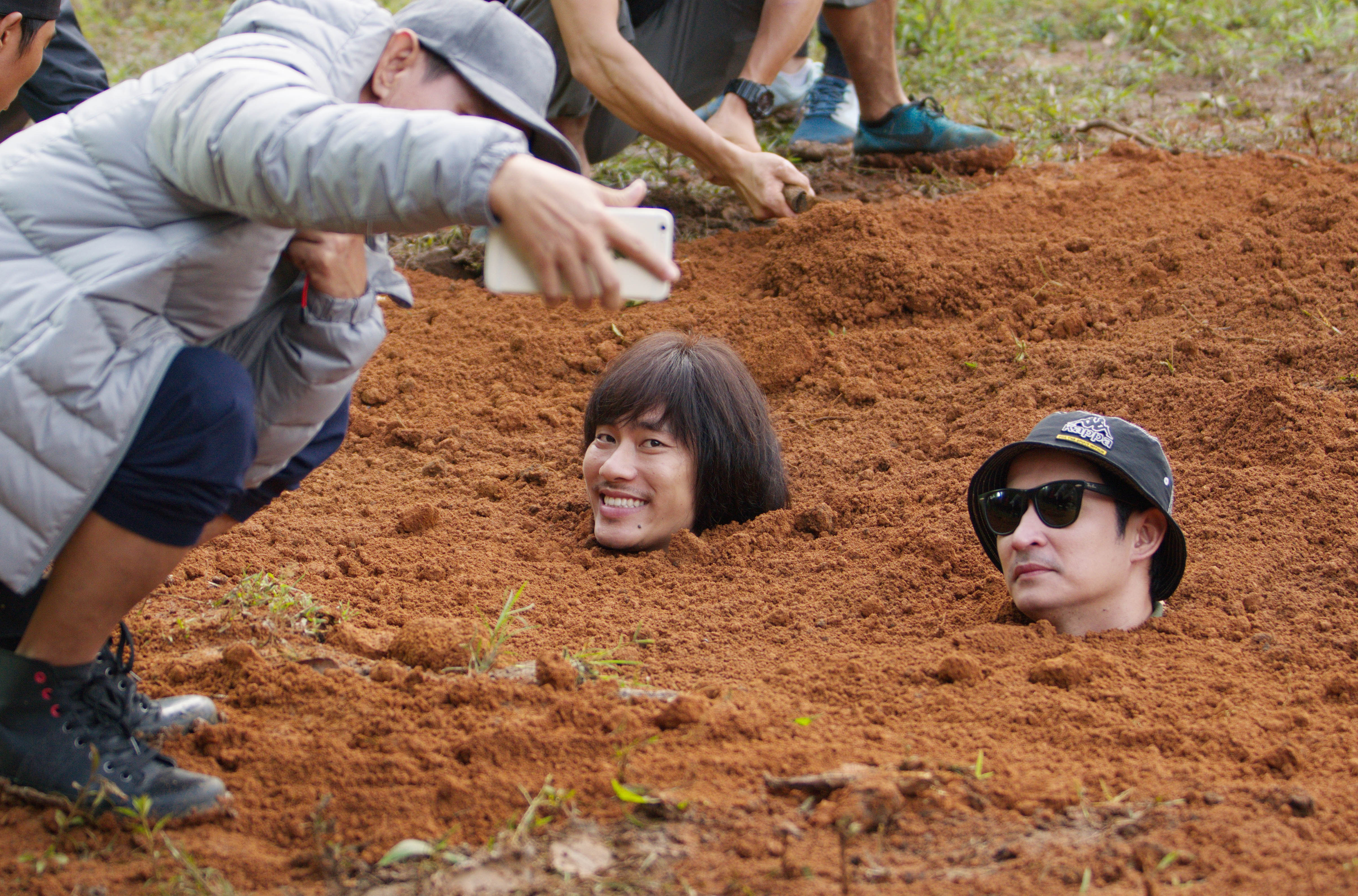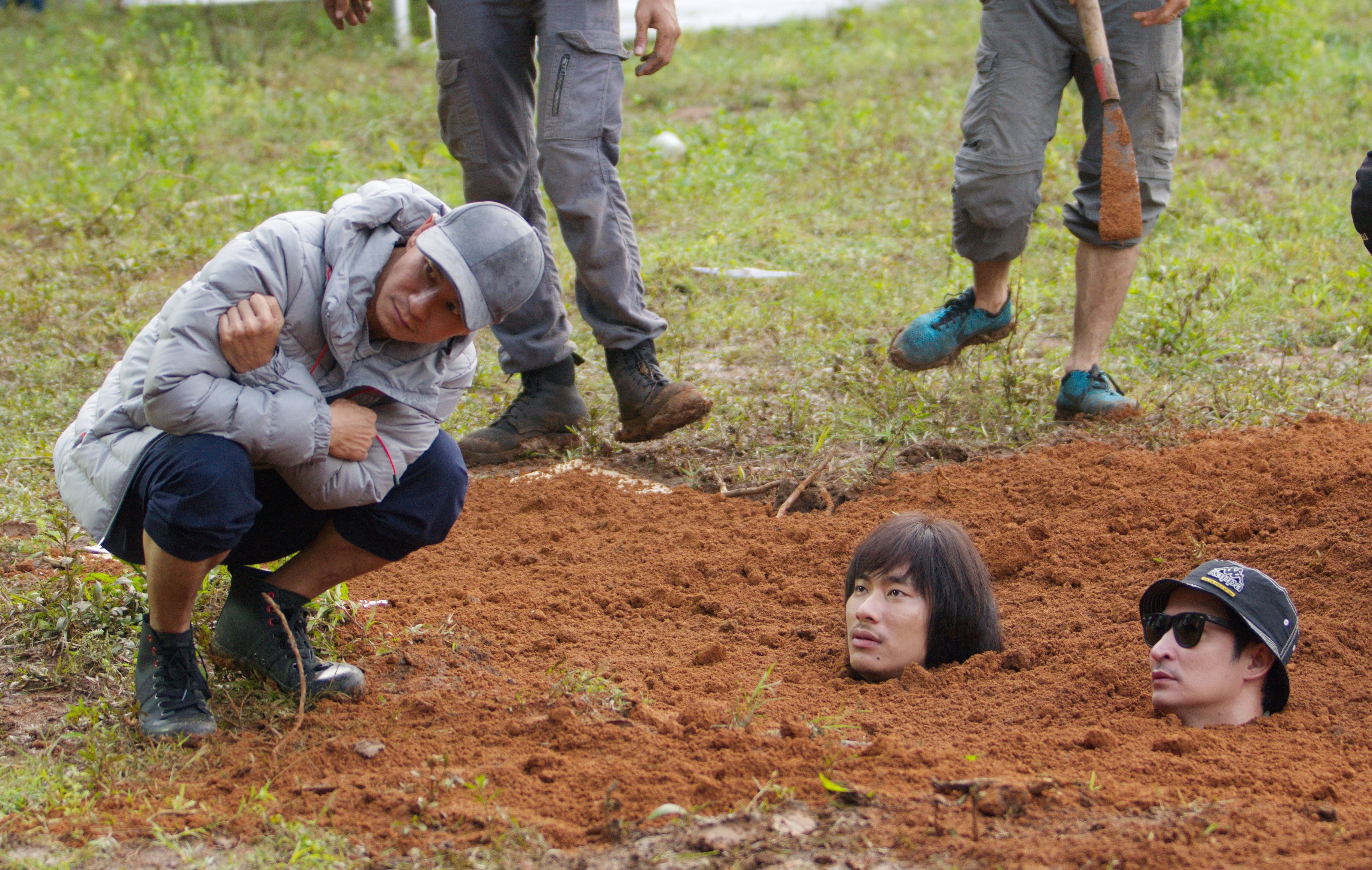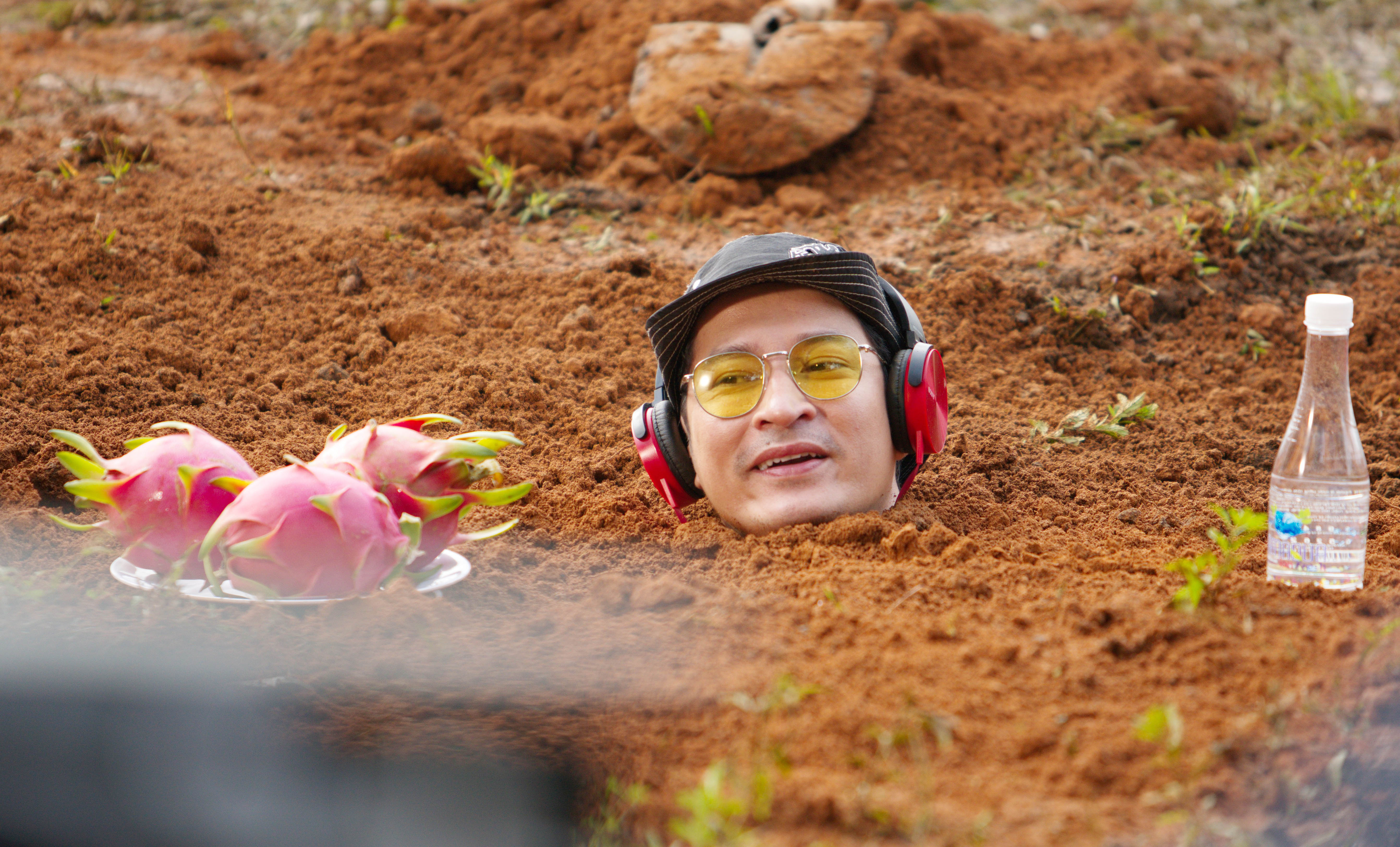 Nhiều khán giả không khỏi thót tim khi xem cảnh Huy Khánh và Kiều Minh Tuấn bị chôn vùi dưới xuống mặt đất gần 1 tiếng đồng hồ.