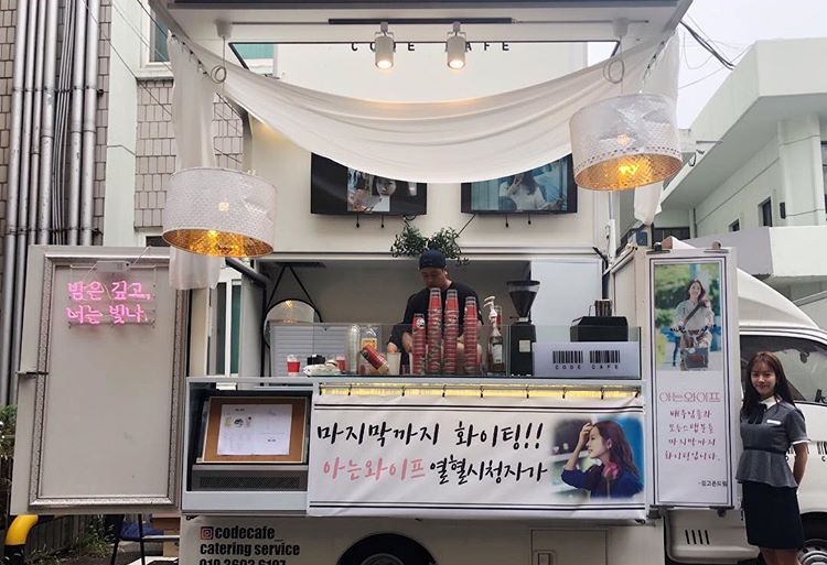 Vừa qua, “nữ thần trong sáng quốc dân” Han Ji Min đăng loạt hình ảnh chụp trước một xe tải coffee và đồ ăn nhẹ do diễn viên Kim Go Eun gửi tới phim trường của bộ phim truyền hình Người vợ thân quen, lên tài khoản Instagram cá nhân. Trên banner của xe tải có ghi lời nhắn gửi của Kim Go Eun: “May mắn đến cuối cùng nhé chị! Từ một fan cuồng nhiệt tình của 'Người vợ thân quen'”.