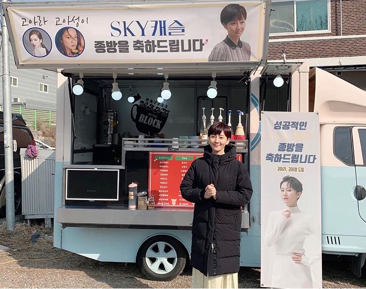 Cùng ngày, tài khoản chính chủ của công ty Artist Company đã đăng tải ảnh của nữ diễn viên Yum Jung Ah - người đang đảm nhận vai chính trong bộ phim gây sốt nhất hiện nay SKY Castle đài JTBC lên mạng Instagram. Cô đứng trước một chiếc xe tải cà phê do hai hậu bối cùng công ty, Go Ara và Go Ah Sung gửi đến phim trường để ủng hộ nữ diễn viên.