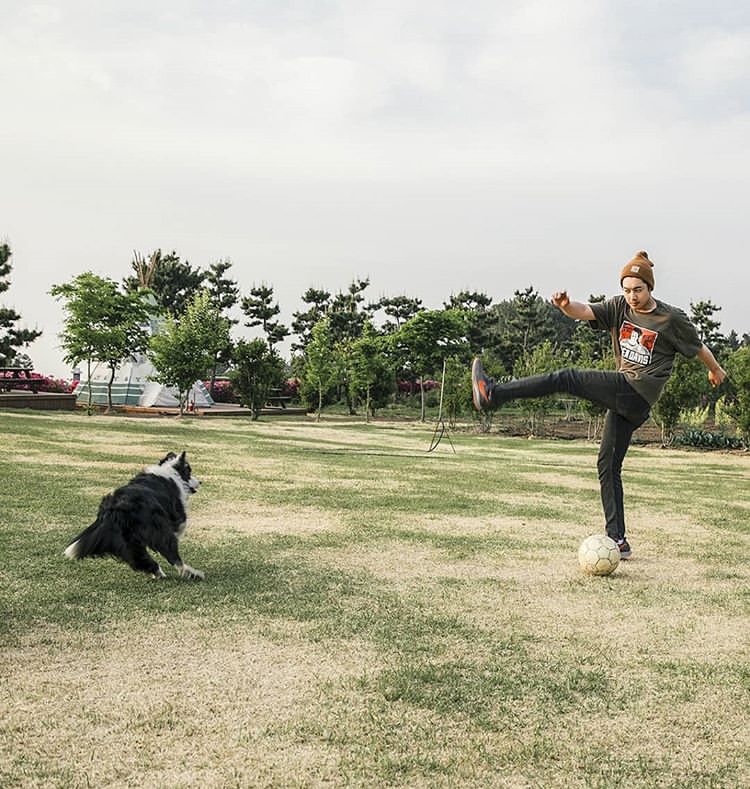 Kim Hyun Joong nói: “Ngày nghỉ, đá bóng cùng Art và Matic”. Trong những bức ảnh công khai, trưởng nhóm SS501 say mê, cùng hai chú chó chơi bóng trên bãi cỏ. Ở các bài đăng trước đó, nam ngôi sao cũng thường xuyên cập nhật hình ảnh và thậm chí tổ chức sinh nhật cho Art và Martic.