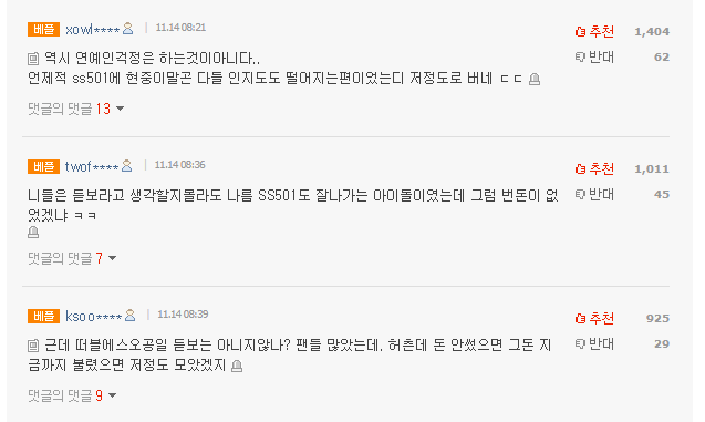 3. [+925, -29] Đừng gọi SS501 là nugus nữa?. Họ có rất nhiều người hâm mộ luôn. Nếu họ không lãng phí tiền và chỉ cần đầu tư nó, tôi chắc chắn họ sẽ có đủ để mua những thứ giá trị ngay bây giờ.