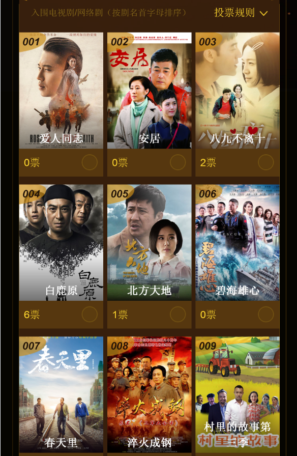 Bạch lộc nguyên (Trương Gia Dịch, Tần Hải Lộ), Năm ấy hoa nở trăng vừa tròn (Tôn Lệ, Hà Nhuận Đông, Trần Hiểu), Liệp trường (Hồ Ca), Tiểu biệt ly (Huỳnh Lỗi, Hải Thanh), Lý Huệ Trân xinh đẹp (Địch Lệ Nhiệt Ba, Thịnh Nhất Luân), Mười dặm gió xuân không bằng em (Trương Nhất Sơn, Châu Đông Vũ)… là những cái tên hâm nóng đường đua Kim Ưng năm nay thật sự. Đáng chú ý nhất, phải kể đến bộ phim Bạch lộc nguyên, bộ phim dính tai tiếng và đã bị cấm chiếu trên sóng truyền hình ngay sau khi phát sóng tập đầu tiên mà không hề đưa ra bất kỳ lý do thích đáng nào. Với chủ đề lịch sử nhưng lại có nhiều cảnh nhạy cảm khiến bộ phim dù đạt số điểm 8,9/10 của khán giả đánh giá trên trang Douban, trở thành đối thủ đáng gờm với Danh nghĩa nhân dân nổi đình nổi đám, bộ phim được đánh giá là ổn nhưng vẫn buộc phải dừng chiếu vì lý do “bất khả kháng”.