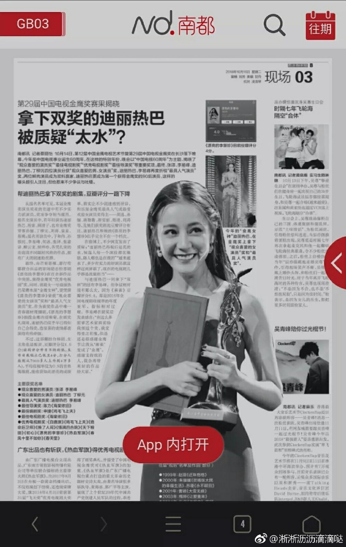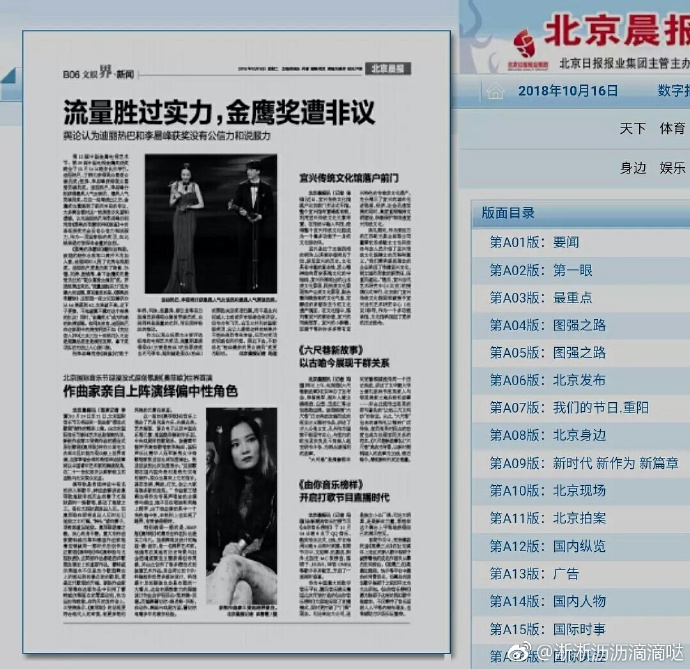 Trước là khán giả xem đài lên tiếng, sau là các báo lớn nhỏ Trung Ương của Trung Quốc với các tiêu đề như: Lưu lượng chiến thắng thực lực, Kim Ưng thưởng vấp phải nhiều sự tranh nghị hay Địch Lệ Nhiệt Ba ẫm hai chiếc cúp trên tay bị nghi ngờ “thèm khát quá rồi”…