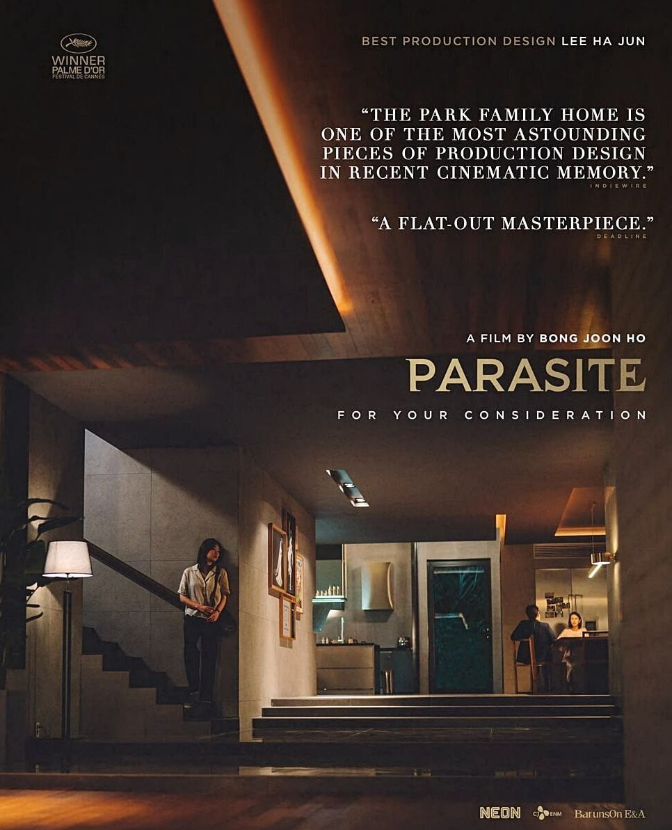 Theo đó, Ký sinh trùng (Parasite) - tác phẩm của điện ảnh Hàn Quốc giành giải Cành cọ vàng tại Cannes vào tháng 5 vừa qua của đạo diễn Bong Joon Ho đã xuất sắc lọt vào đề cử phim nói tiếng nước ngoài xuất sắc nhất và Ca khúc trong phim hay nhất. Đây là lần thứ 2 một bộ phim của Hàn Quốc và cũng là bộ phim đầu tiên của đạo diễn Bong Joon Ho lọt vào vòng đề cử rút gọn của Oscar, sau phim Burning của đạo diễn Lee Chang Dong năm 2019.