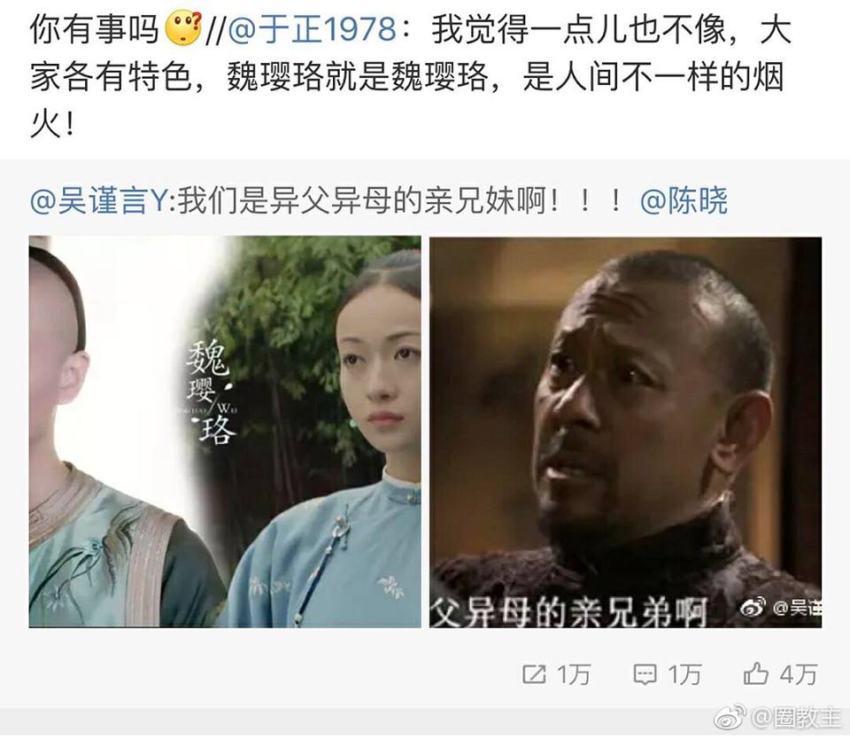 Theo như mọi người đều biết, Trần Hiểu trực thuộc công ty Hoan Ngu Ảnh Thị, được Vu Chính hết lòng nâng đỡ, và anh cũng là một trong những diễn viên nổi tiếng nhờ vào “bàn tay vàng” của Vu Chính. Trần Hiểu đã dựa vào không ít tác phẩm của Vu Chính như Tiếu ngạo giang hồ, Lục Trinh truyền kỳ, Thần điêu đại hiệp,… để trở thành một diễn viên hạng A như ngày hôm này. Chính vì vậy khi nói đến sự thành công của Trần Hiểu, không thể không nhắc đến công lao lớn nhất của Vu Chính. Thế nhưng chỉ vì hành động tuyên truyền phim Như Ý truyện của Trần Hiểu mà hai phía Trần Hiểu và Vu Chính đã “bức xé”, đấu đá nhau vô cùng quyết liệt, cũng chính vì sự việc này mà có không ít cư dân mạng nghi ngờ rằng cả hai đã thật sự trở mặt nhau.