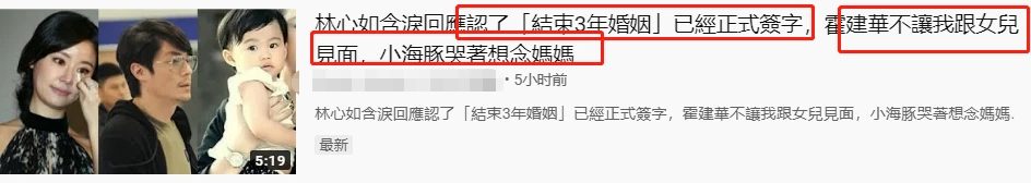 Ngày 04.11, truyền thông Hong Kong đưa tin Lâm Tâm Như và Hoắc Kiến Hoa đã hoàn tất thủ tục ly hôn, kết thúc cuộc sống hôn nhân giữa hai người. Trước mắt, cả hai mỗi người một ngã, và chờ đợi quyết định từ tòa án trong việc phân chia tài sản.