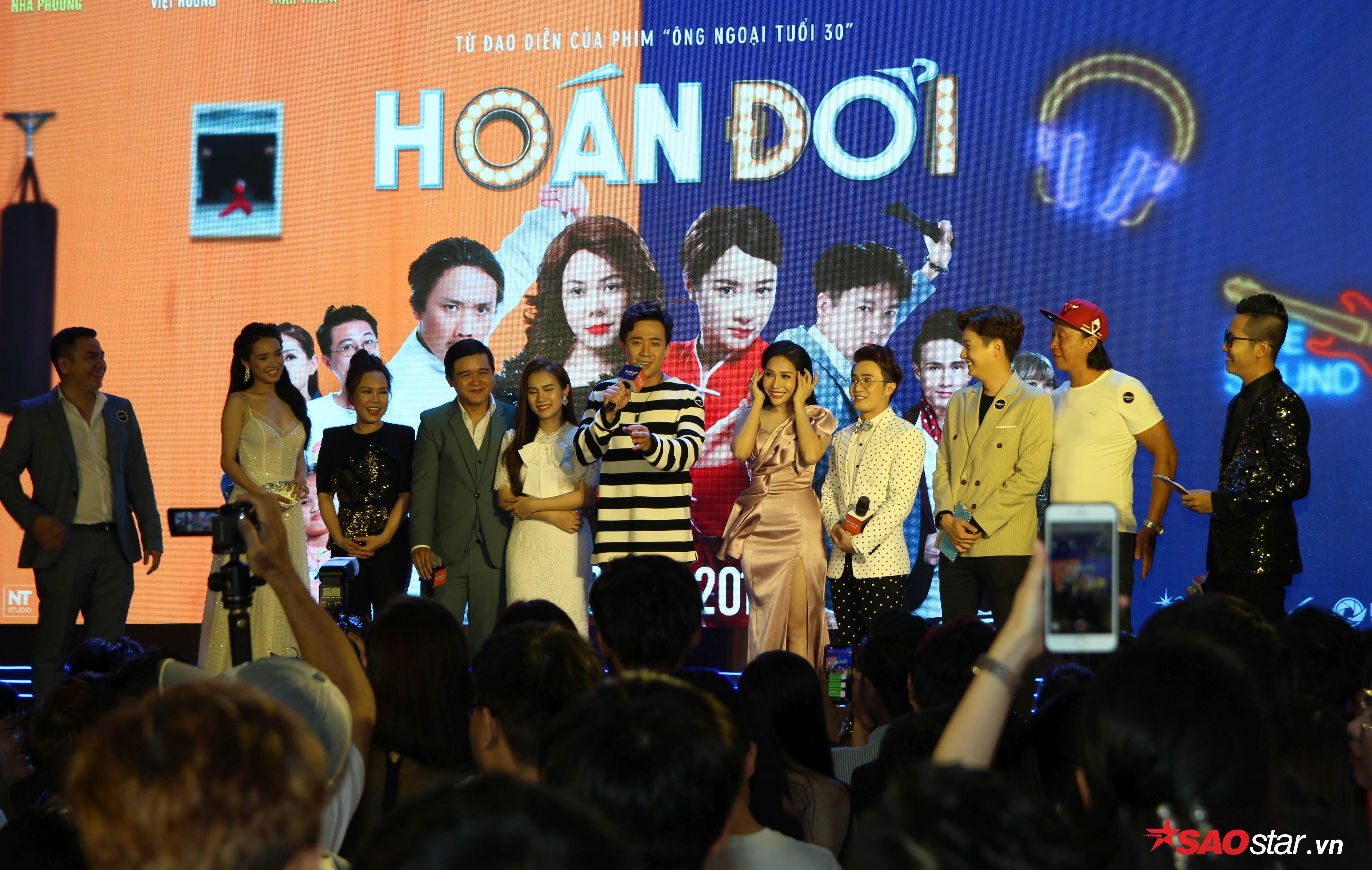 Đặc biệt, kể cả khi giao lưu với đoàn phim, nữ chính Nhã Phương và nam phụ Ngô Kiến Huy cũng đã khéo léo đứng ở hai đầu. Có lẽ sau khi đính hôn, nữ diễn viên Hoán đổi biết cách để hôn phu Trường Giang không ghen.