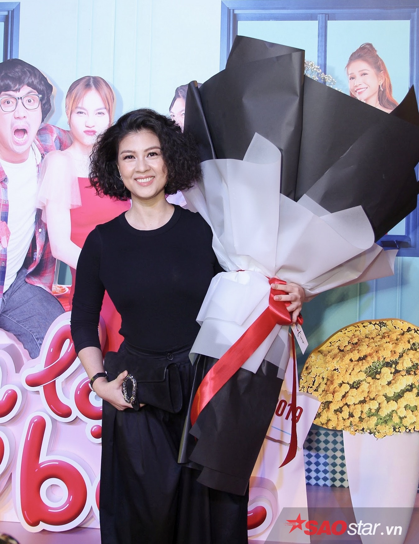 Nữ nghệ sĩ Kim Thư mang bó hoa to đến chia vui cùng đội ngũ sản xuất.