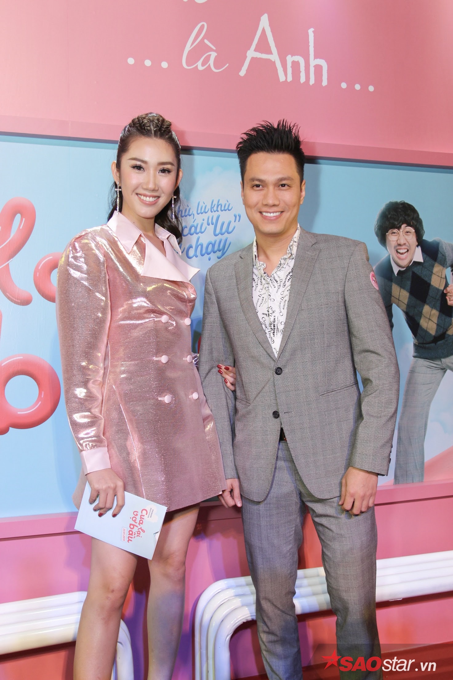 Nữ nghệ sĩ Lê Giang và nam diễn viên Minh Dũng vui vẻ chụp hình tại thảm đỏ “Cua lại vợ bầu”. Trong phim, vai diễn của Lê Giang sẽ tạo được bất ngờ lớn cho khán giả vì quá khác với tính cách của cô ngoài đời thực.
