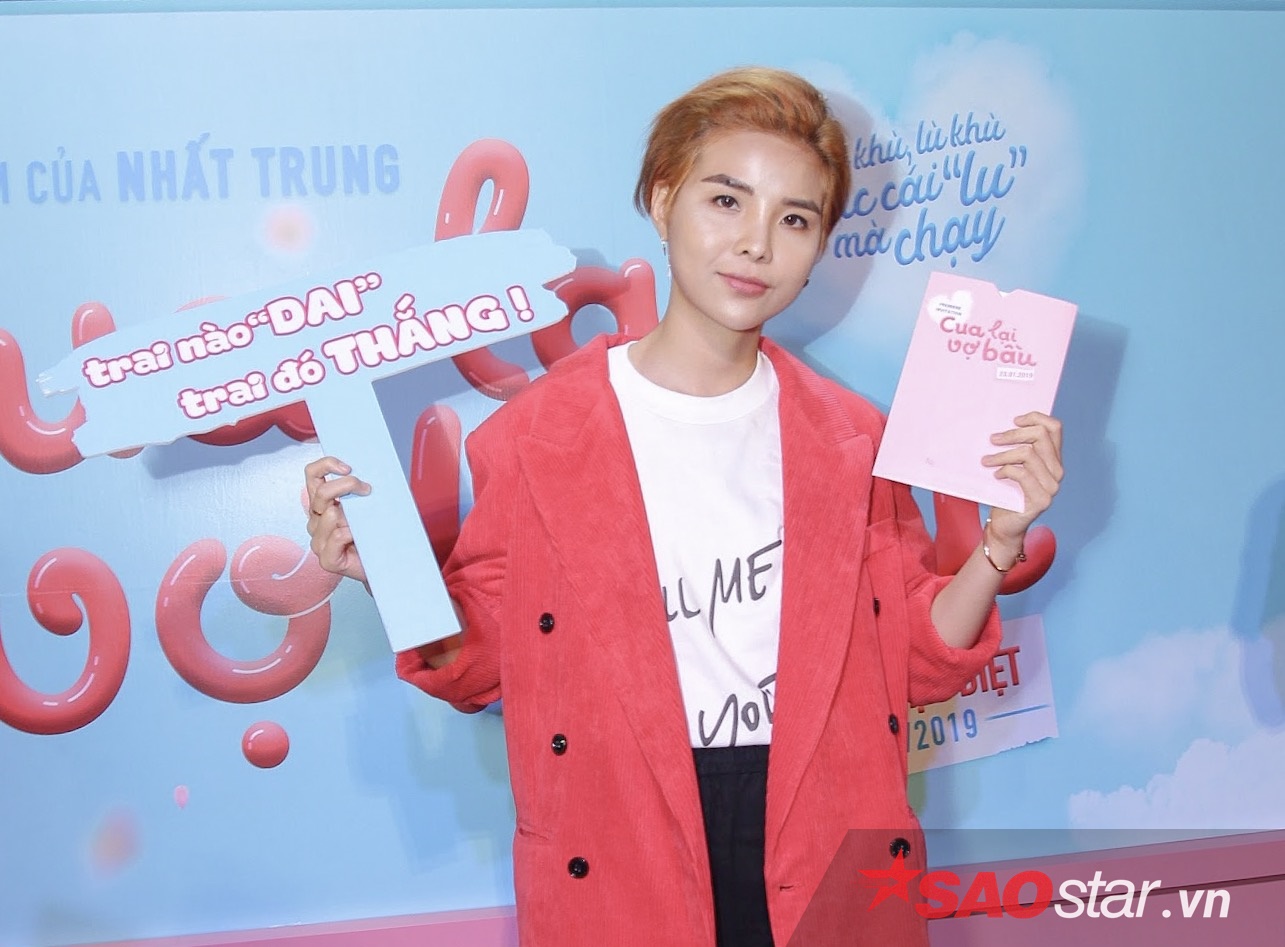 Nữ ca sĩ Lệ Quyên đến chung vui, mừng dự án “Cua lại vợ bầu” ra mắt thành công.