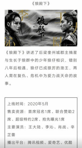 Lang điện hạ được xem là bom tấn cổ trang khi được đầu tư với số tiền khủng 300 triệu NDT (1000 tỷ đồng). Trắc trở trong việc ra mắt nhưng nhà sản xuất vẫn kiên trì, không thể từ bỏ bộ phim. Theo tin mới nhất, bộ phim sắp sửa trình làng khán giả vào tháng 6. Trên trang mạng Tencent, Lang điện hạ đang là tác phẩm được mong chờ nhiều nhất, thậm chí thứ hạng còn cao hơn cả Dư sinh, xin chỉ giáo nhiều hơn – dự án mà Tiêu Chiến đảm nhận vai chính.