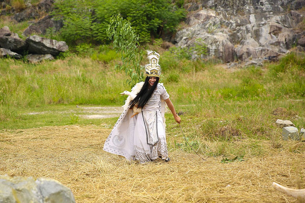 Mị Châu - Trọng Thủy vốn là một điển tích xa xưa của Việt Nam, với nội dung kể về chuyện tình yêu ngang trái của cặp đôi hoàng tộc bị nhấn chìm trong những mưu mô, toan tính bởi vận mệnh quốc gia. Thay thế cho màu sắc tang thương trong bản gốc, cặp đôi Hoài Lâm - Ngọc Thanh Tâm xuất hiện cực hài hước trong hình ảnh phân vai đảo lộn giữa Trọng Thủy - Mị Châu. Không những vậy, nhờ sự giúp sức của Cao Lỗ, nàng “Mị Châu” Hoài Lâm cuối cùng cũng được về bên “Trọng Thủy” Ngọc Thanh Tâm, tạo nên một kết cục viên mãn.