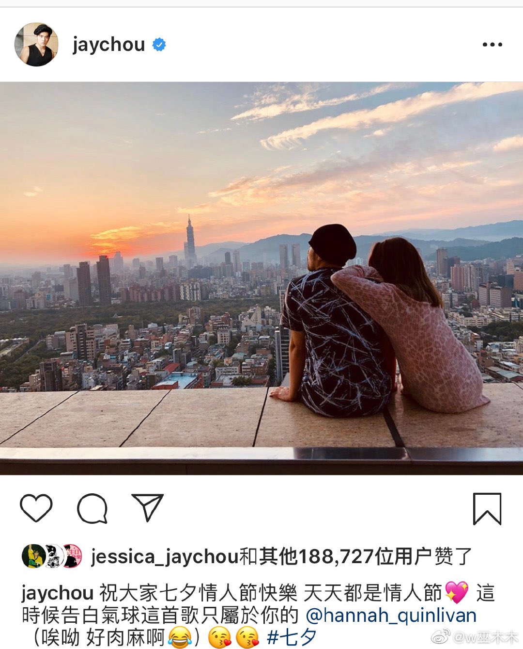 Hãy cùng SAOstar điểm qua những hình ảnh đẹp mắt mà các ngôi sao và đoàn phim Trung Quốc đã đăng tải lên Weibo, Twitter cũng như Instagram trong ngày Thất Tịch 2019 nhé.