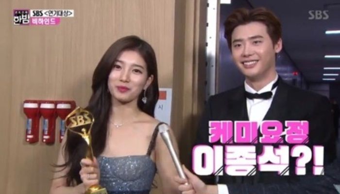 Phản ứng hóa học của Lee Jong Suk và Suzy tiếp tục ở hậu trường như được tiết lộ bởi SBS News s Entertainment News Hanbam. Khi được hỏi về chiến thắng của họ, hai người đã nói đùa với nhau như thể họ là một cặp đôi thực sự.