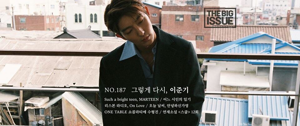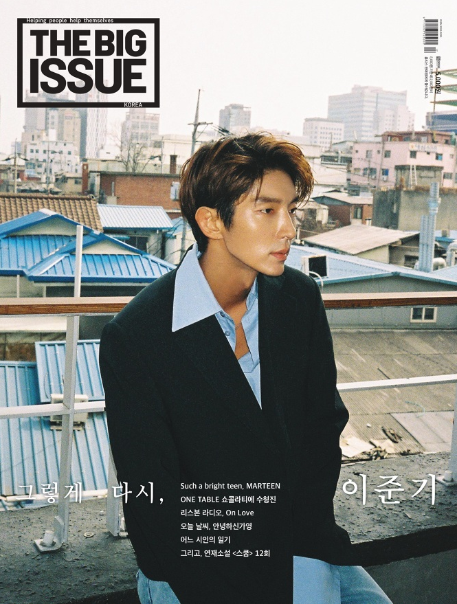 Gần đây, Lee Joon Gi đã xuất hiện trên bìa tạp chí The Big Issue Korea và nói về mục tiêu nghề nghiệp của mình. The Big Issue Hàn Quốc là một tạp chí cung cấp một nửa số tiền thu được cho những người vô gia cư khi họ làm việc với tư cách là nhân viên bán hàng. Lee Joon Gi tình nguyện dành thời gian tham gia buổi chụp hình và phỏng vấn. Các diễn viên hàng đầu đặc trưng trong một buổi chụp hình lấy cảm hứng từ retro đã được quay với một máy quay phim trên bối cảnh của Seoul.